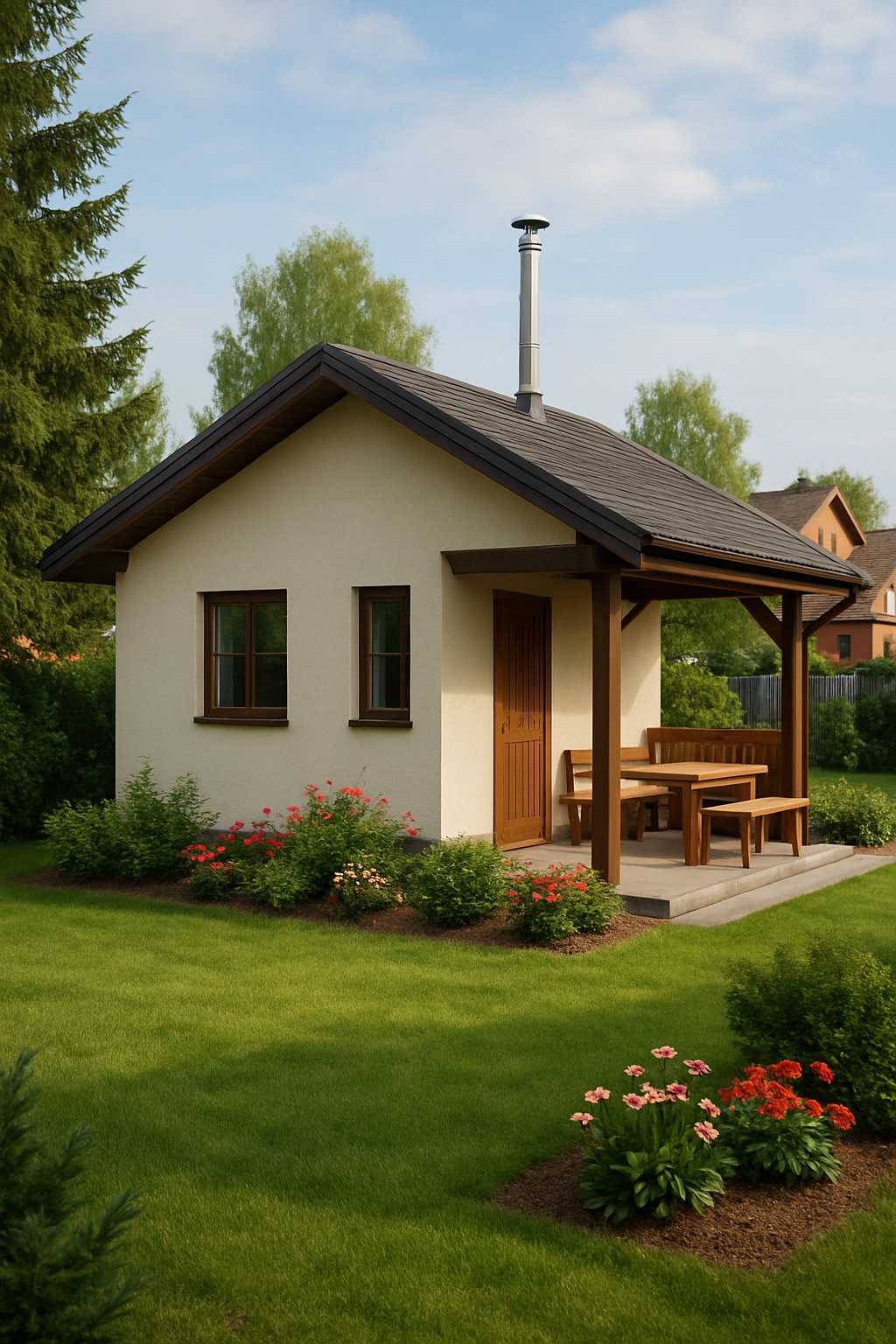 Баня 6×6 — просторный вариант. Сюда влезает полноценная комната отдыха, просторная моечная и парная на 4–5 человек. Некоторые делают на втором этаже мансарду — тогда блоков нужно в 1.5 раза больше.